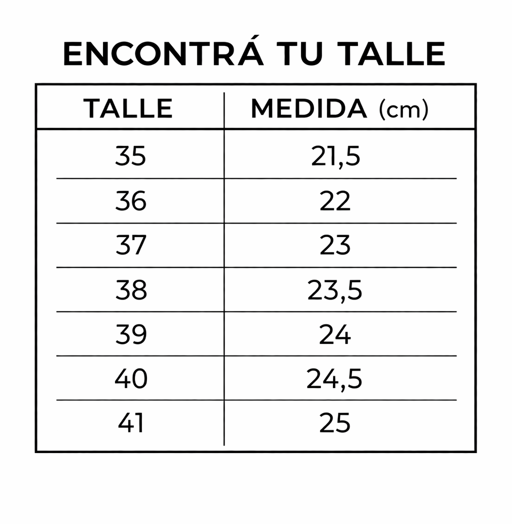 Podés medir tu pie como indicamos arriba, ver la Guía de Talles o escribirnos por WhatsApp y te ayudamos.